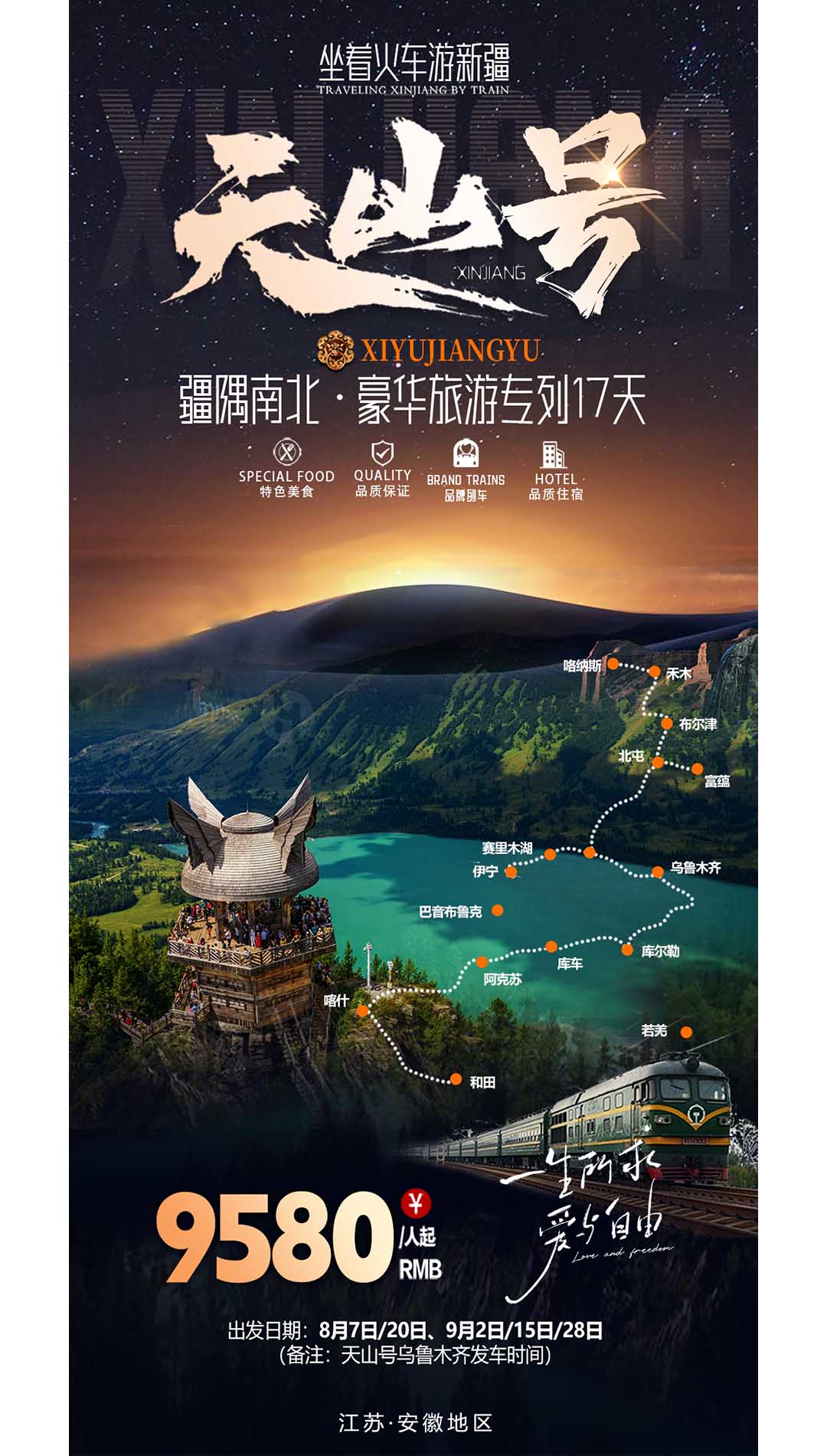 1.交通:往返交通硬臥(隨機(jī)出票)+天山號旅游專列硬臥/軟臥+目的地空調(diào)旅游大巴;