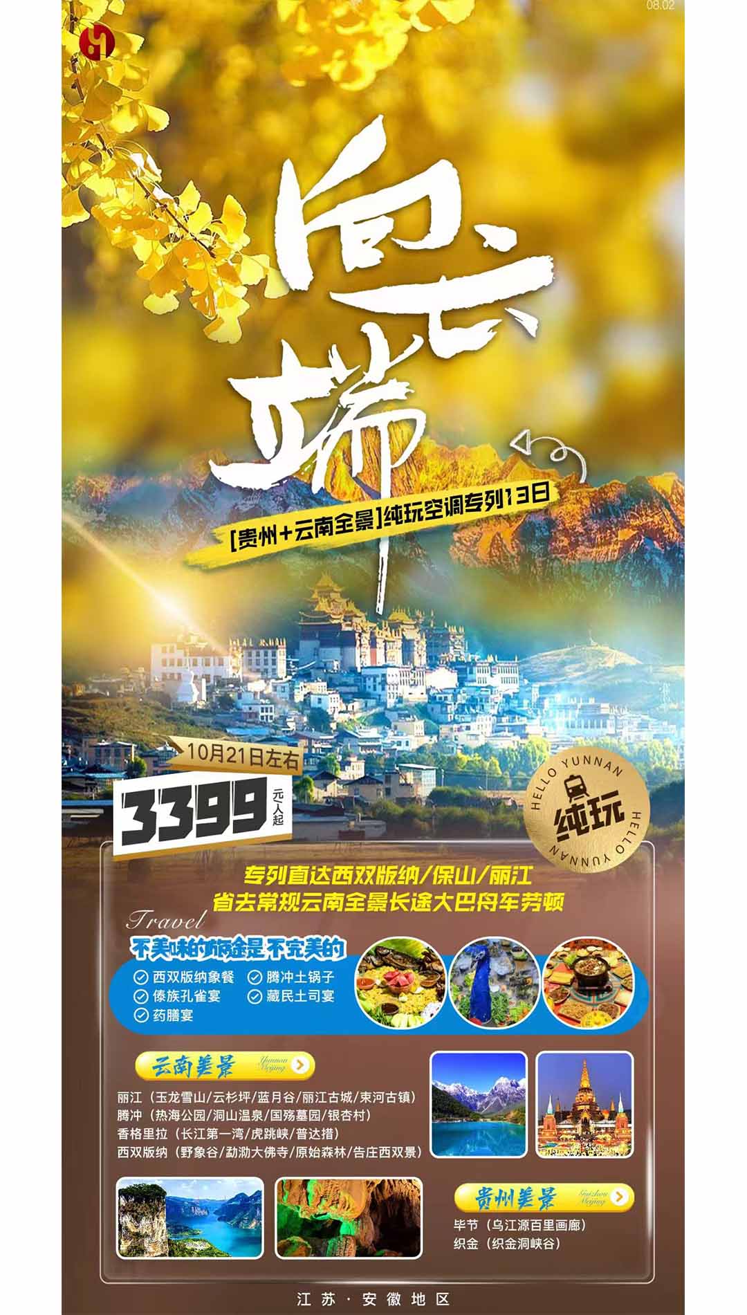 貴州+云南全景 純玩空調(diào)專列 13日